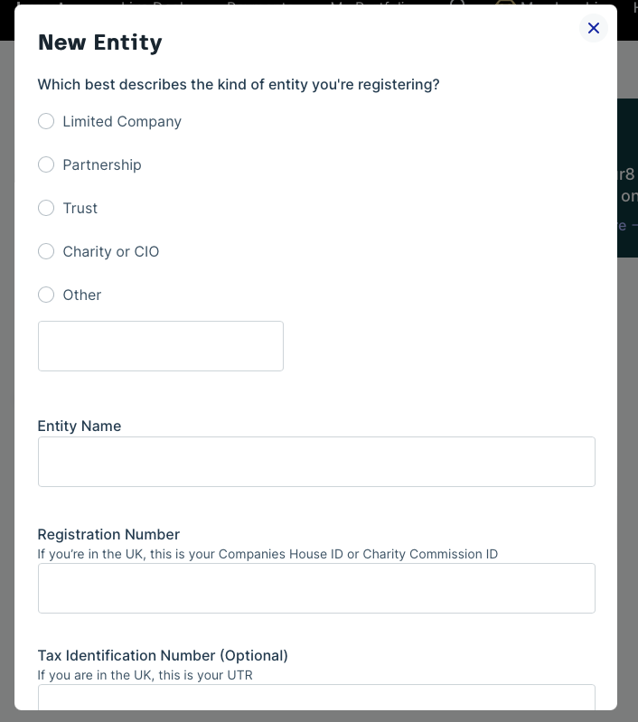 1.) To set up an entity, please first register a Cur8 account or log in to your existing account here